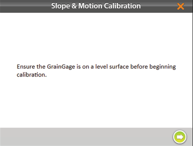 Slope and motion calibration establishes the 1G voltage for the accelerometer inside the GrainGage. This calibration is critical for good weight measurements on the moving combine. It should not need to be calibrated more than once a year.