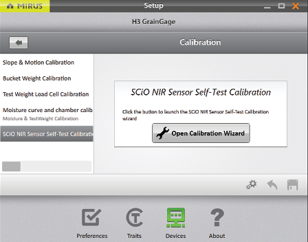 - From Setup > H3 GrainGage > Calibration, tap SCiO NIR Sensor Self-Test Calibration