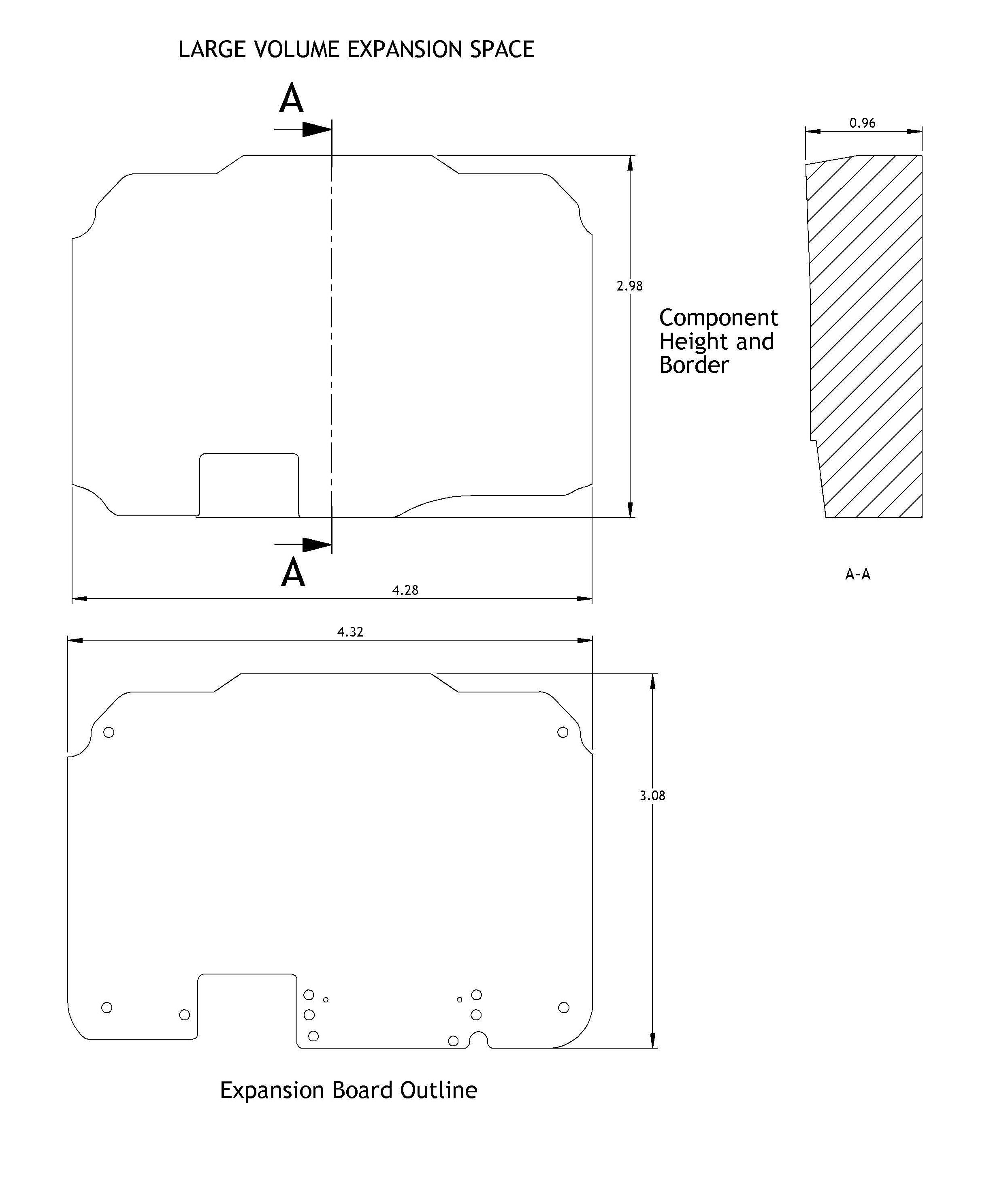Samtec 30-pin Board-to-Pads connector with two side M2 solder nut fasteners providing: - 16 GPIO lines - 3 open, 13 shared (such as with some of the following) - USB Host - Two UART (serial COM) - I2C signa l- Direct connect to 3.7V battery for up to 2 amps unregulated power supply - 5V regulated power supply -3.3V regulated power supply - Audio In/Out |