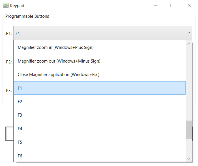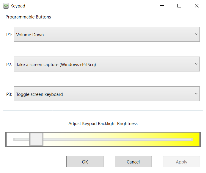 - Use the Keypad Settings utility to assign new functions to the P1, P2, and P3 keys following the instructions in the Keypad Utility section.