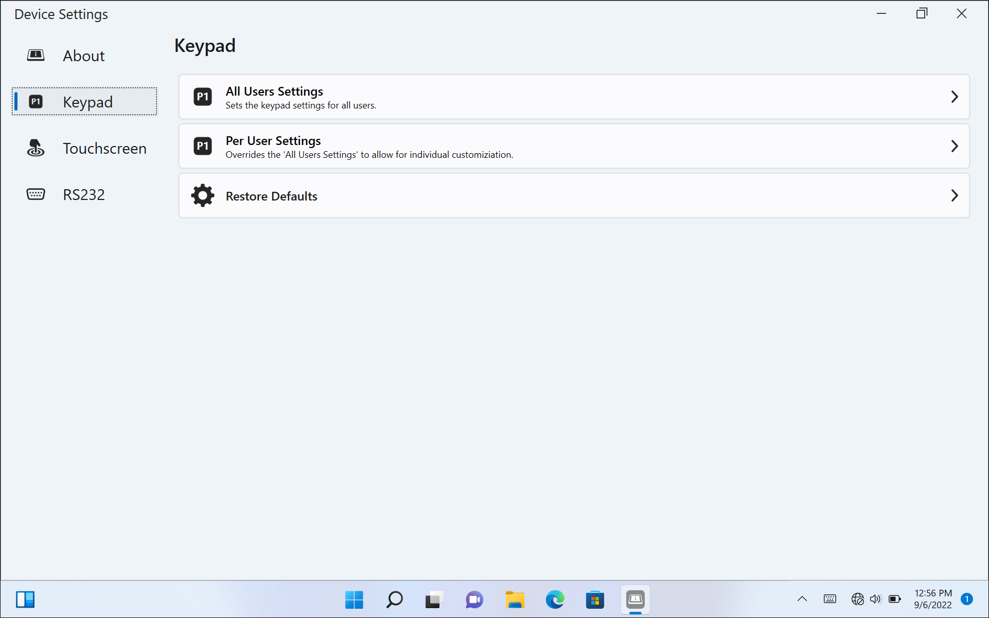 - All Users Settings to re-assign the key(s) for all users of the device.