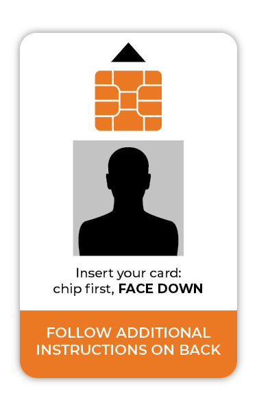 The following images show the instruction card that comes inserted in the smart card reader.