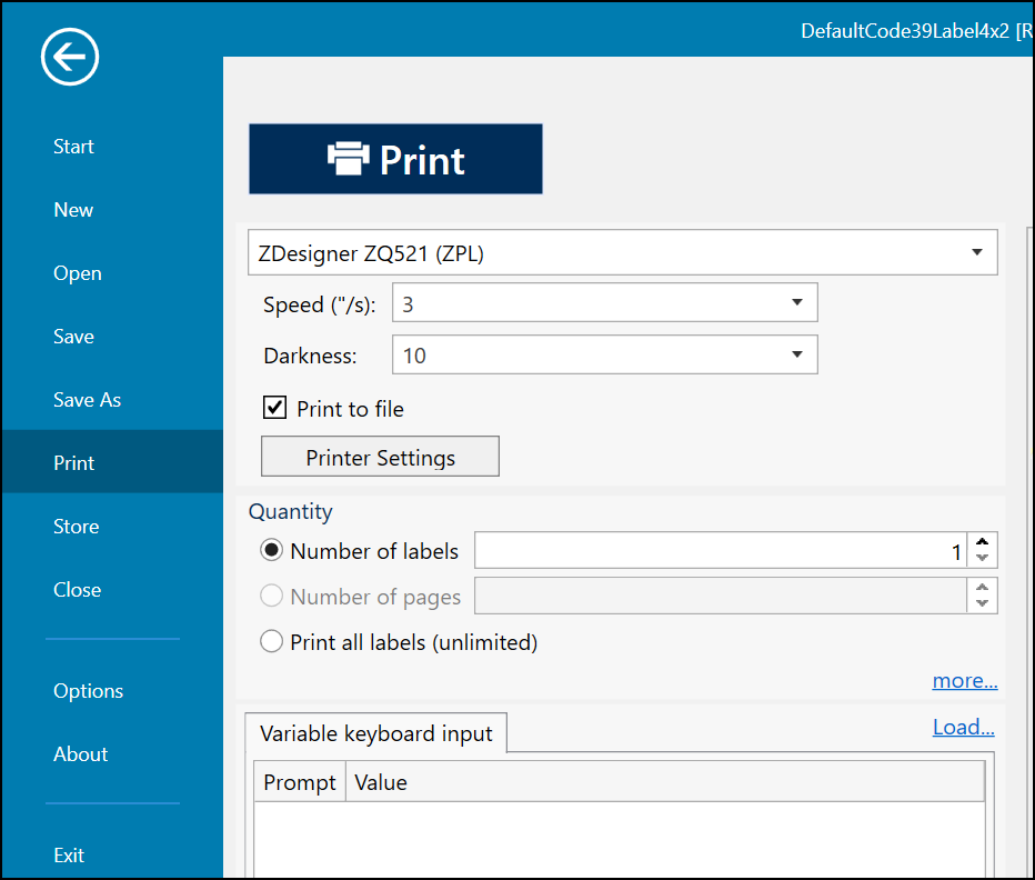- Under Label > Label Template, select the label that you created and customized in ZebraDesigner3 from the drop-down list.
