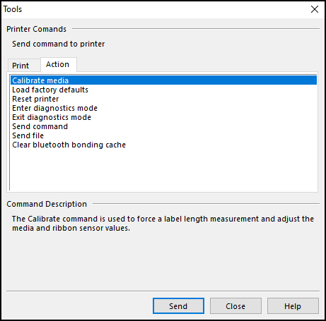 To verify the printer is working correctly, select Feed one label under the Print tab and click Send.