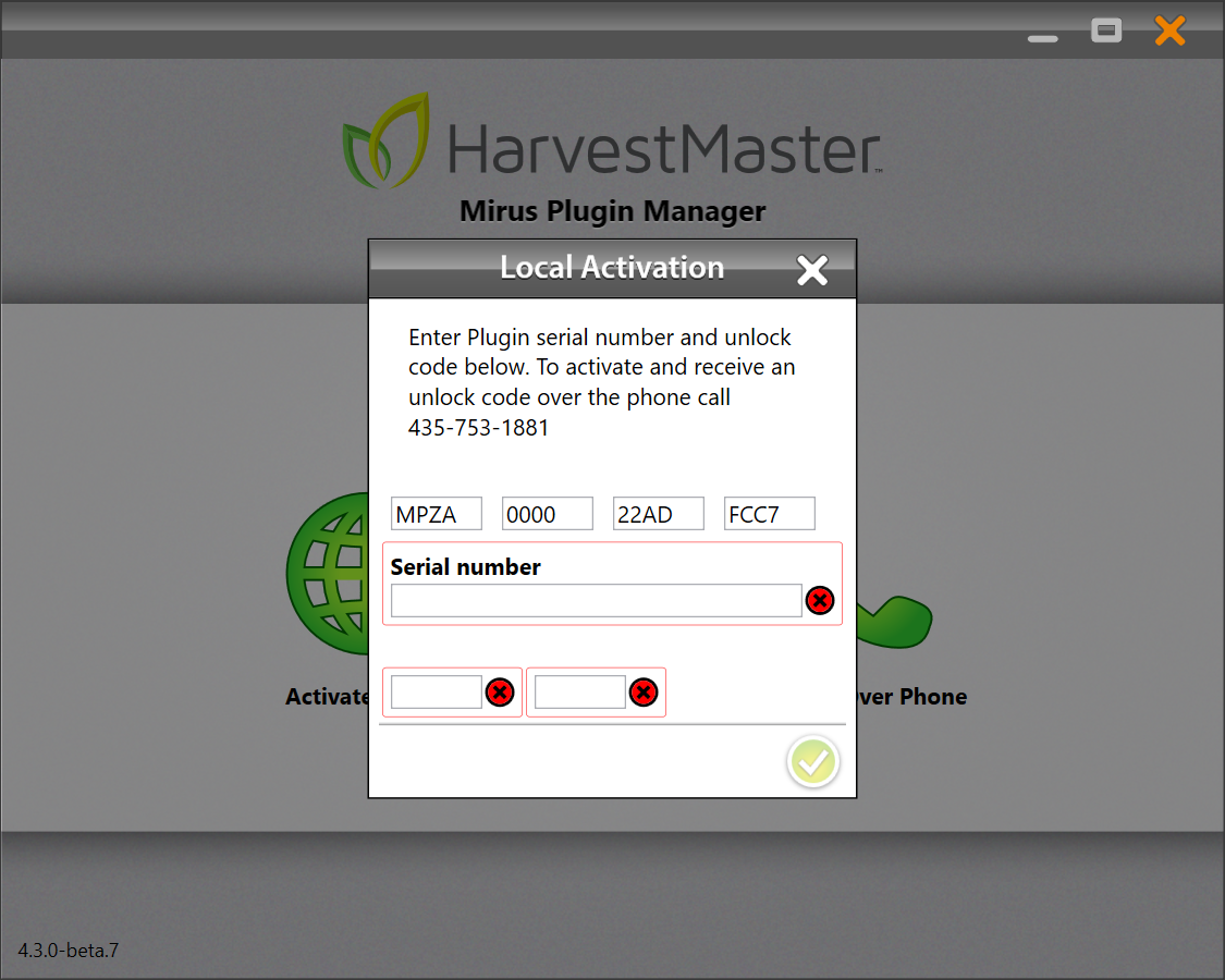 - If you chose to activate the plugin online, use the registration number, serial number, and unlock code to continue.
