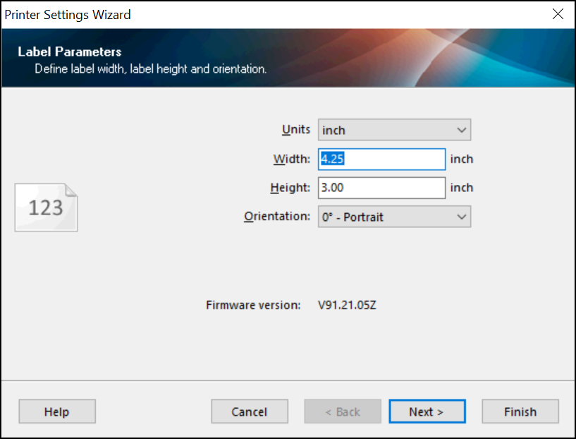 On the Label Parameters screen, enter the width and height of the label. Click Next.