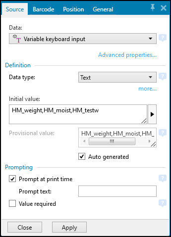 Under Initial value enter HM_weight,HM_moist,HM_testw