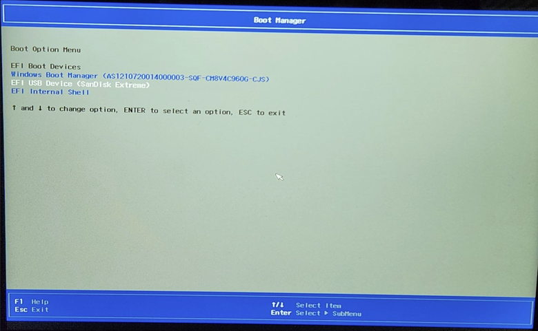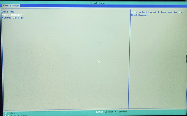- When you see the Front Page, release the ESC key and select Boot Manager.