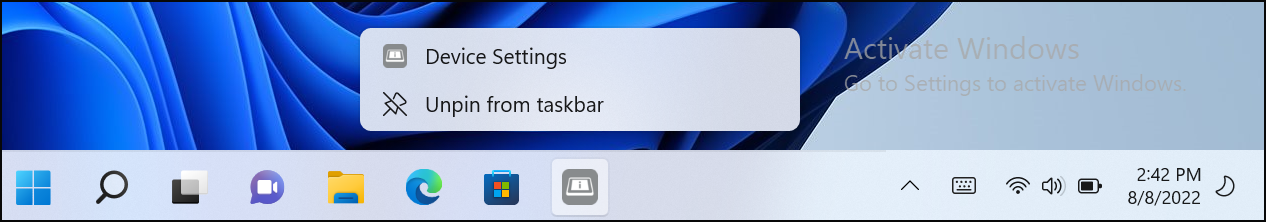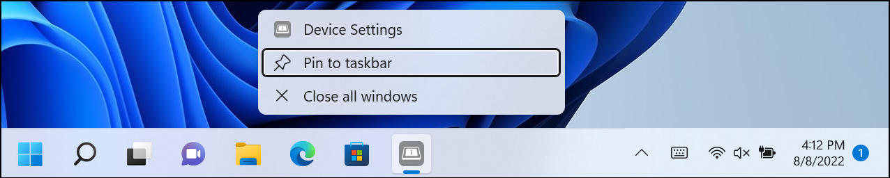 The Windows taskbar provides quick access to your favorite apps. You can customize the taskbar to fit how you use the tablet.