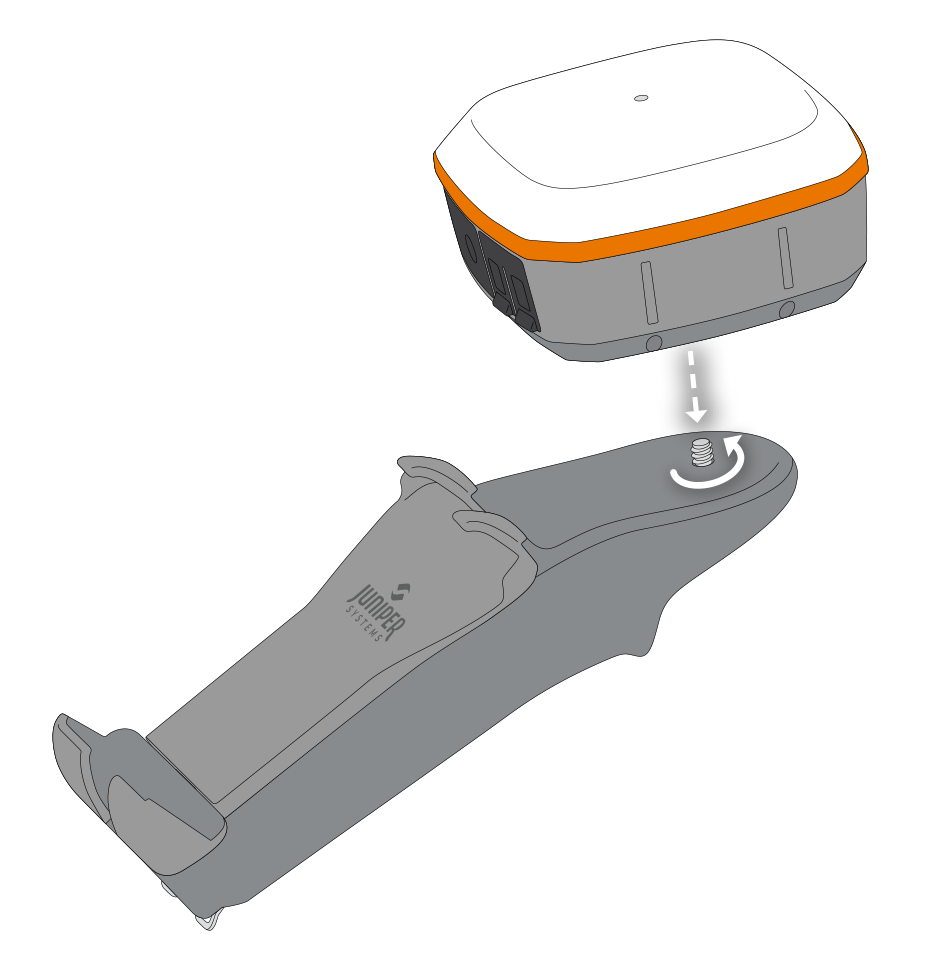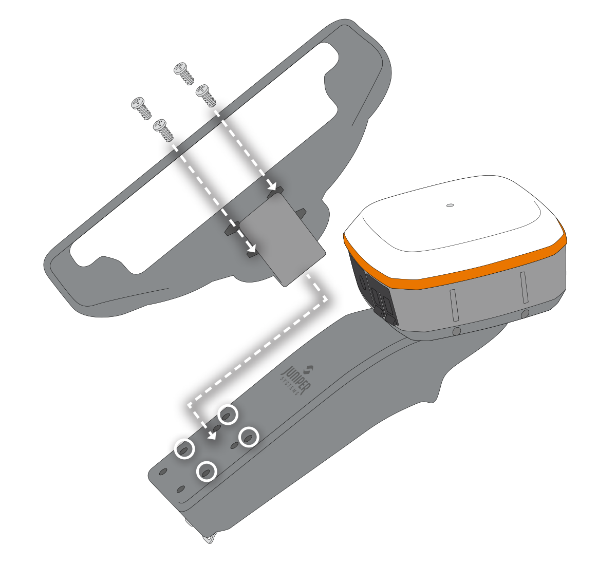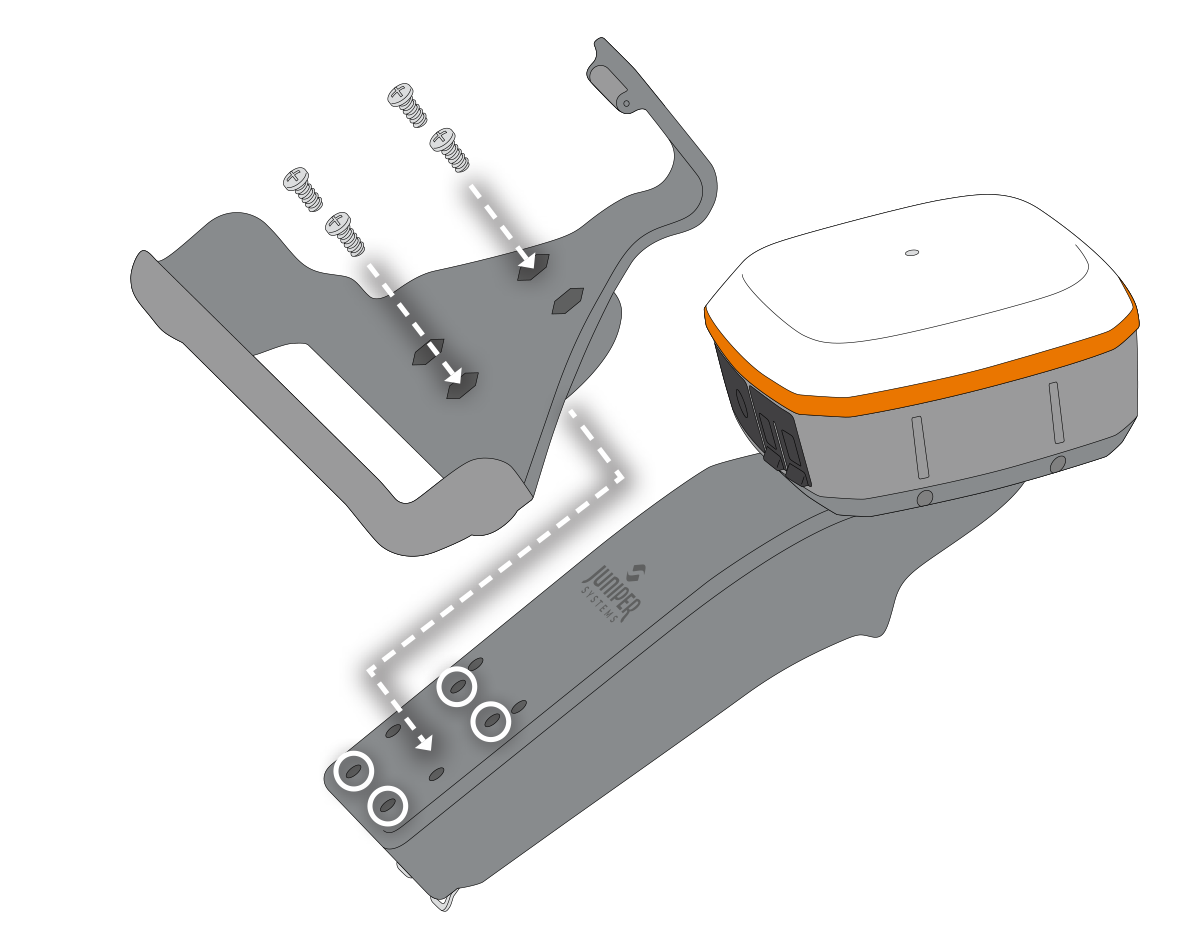 - Attach the mounting screw on the Geode Grip to the mount adapter on the bottom of the GNSS receiver.