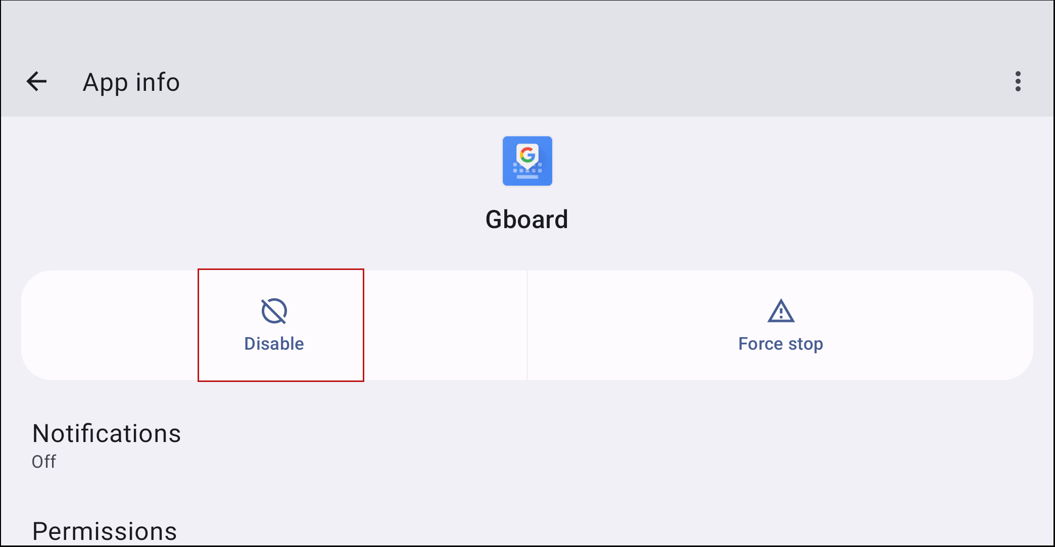Note: Disabling Gboard may affect the functionality of some apps. You cannot delete Gboard because it is pre-installed on the device, but disabling the app will hide it.