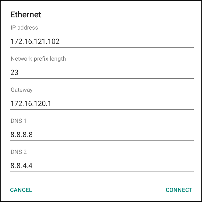 To set a static IP address with an ethernet connection on an Android device (such as the Mesa 3 Android),