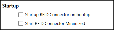 | Startup RFID Connector on bootup | When this option is checked the RFID Connector app will automatically open when you log in. |
