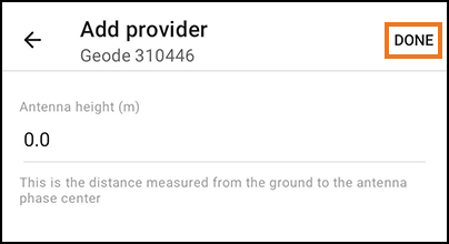 - Establish an NTRIP/RTK connection. For more details, see the GNS3 User Manual, Geode Connect for Android / Learn Geode Connect / Configure NTRIP/RTK (page 152).