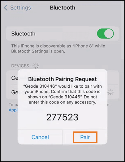 Pair your Geode to your iOS device using the Bluetooth settings.